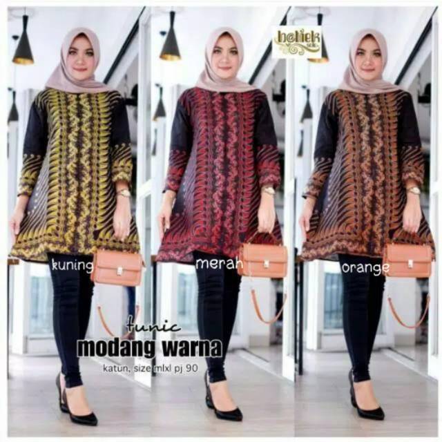 Tunik Modang warna/aruna Batik Muslim Kantor Midi