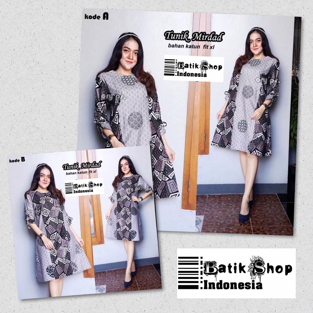 Name: Batik Tunik Mirdad Dress Wanita Motif Katun All Size Modern Premium Abu Cewek Exclusive