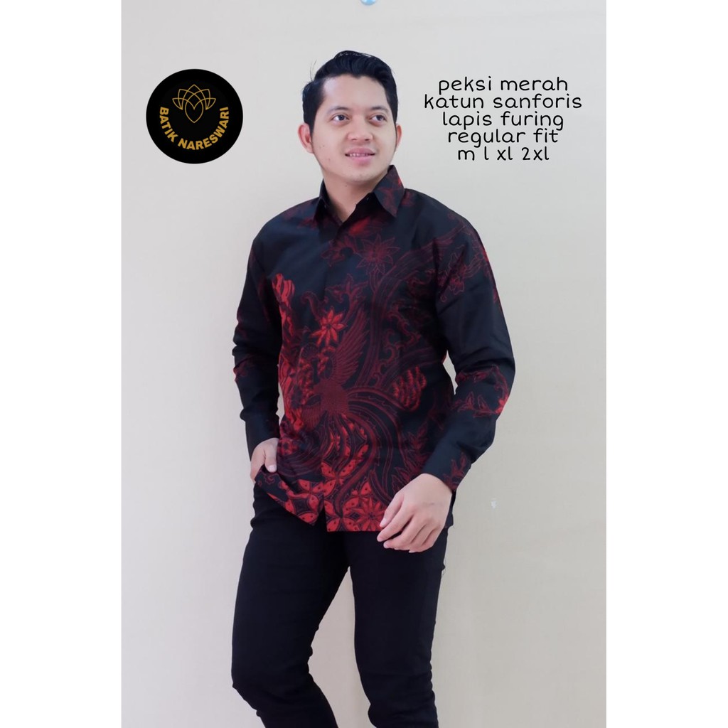 Name: (1kg=4pcs) Kemeja Batik Lengan Panjang Batik Ori Nareswari Peksi Merah Batik Solo Seragam Batik