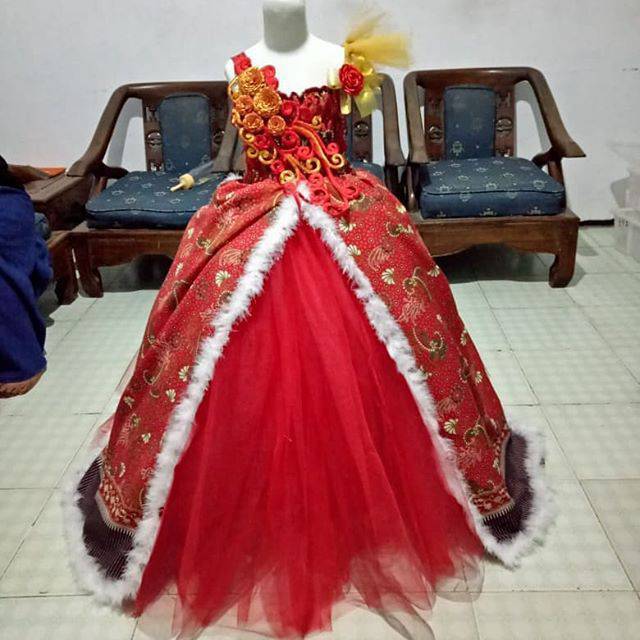Gaun motif batik untuk fashion show usia 1-1