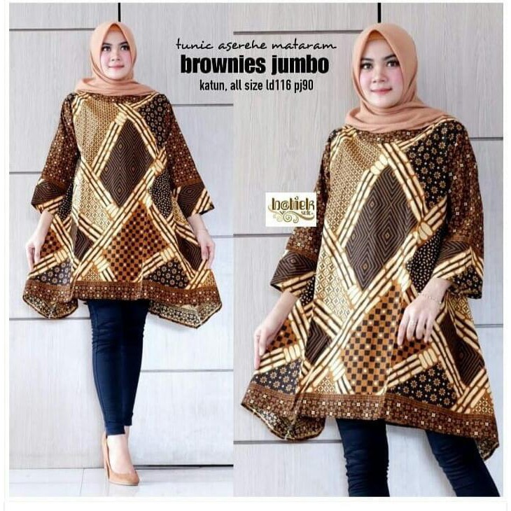 Name: Tunik Aserehe Mataram Brownies Jumbo Batik Sogan Big Size Muslim Kantor