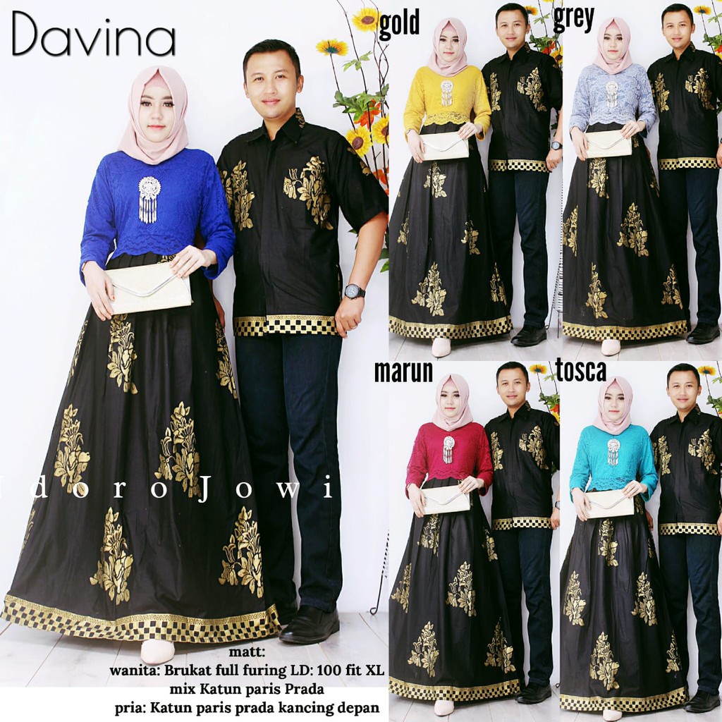 Batik couple gamis bahan prada mix brokat t