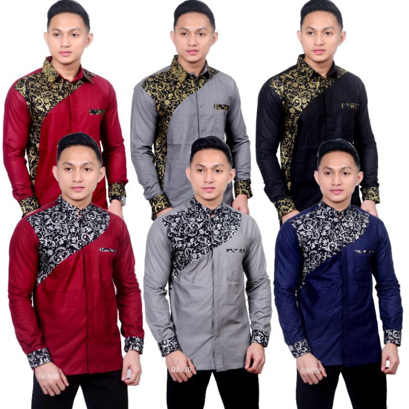 Paling Murah Pakaian di Kabupaten Enrekang Distro Batik Kombinasi Hrb026 Kemeja Halus Kemeja Batik Prada Lengan Panjang dari Ri2 Store Kab. Pekalongan