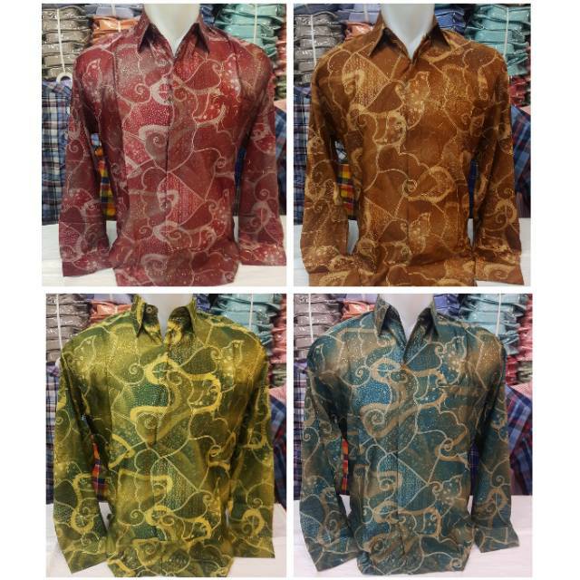 Name: Kemeja Batik Licin Pria Hijau Lime Hijau Botol Merah Marun Coklat Gold Emas Lapis Furing Regular Fit