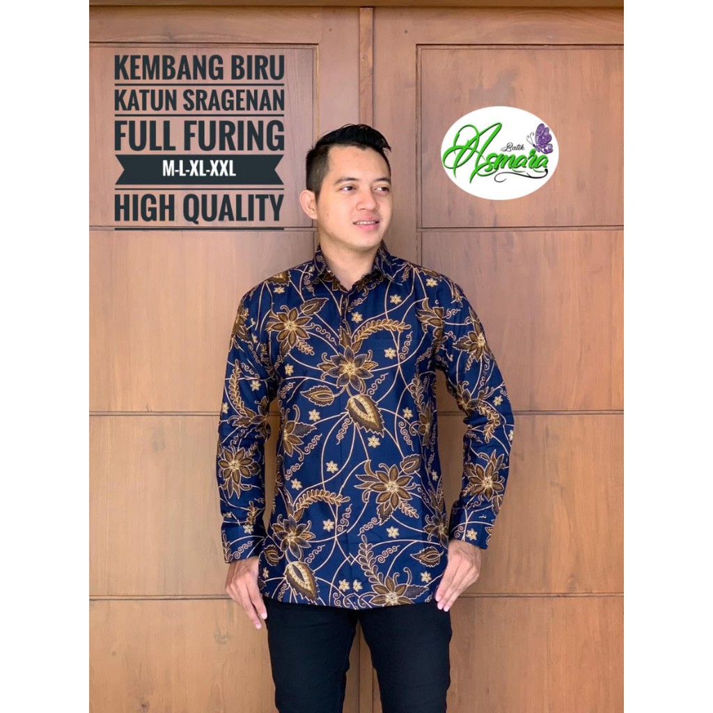 Name: Kembang Biru Kemeja Batik Pria Full Furing Katun Primisima Batik Solo Batik Pria Warna Navy
