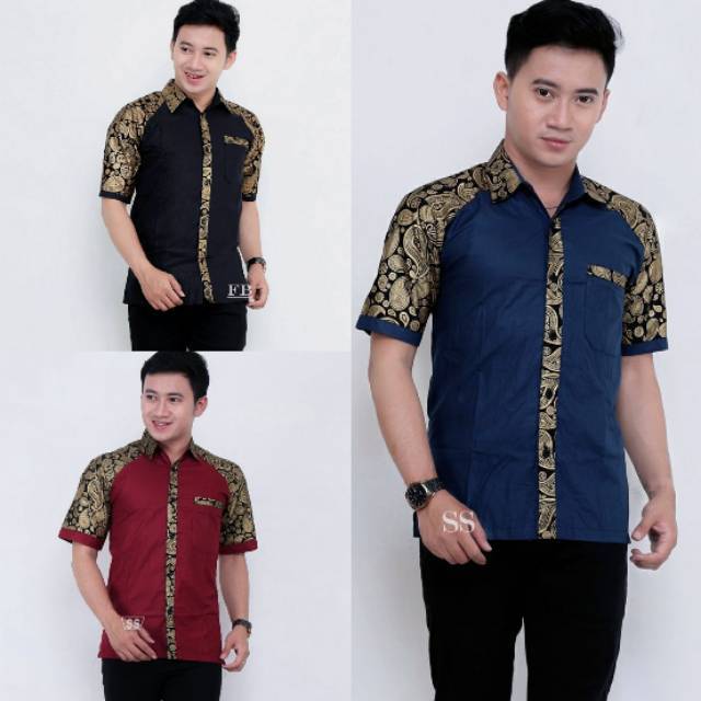 Name: Baju Batik Kombinasi Kemeja Batik Kombinasi Motif Kiong Warna Marron Navy Hitam Size M L Xl Xxl Cod
