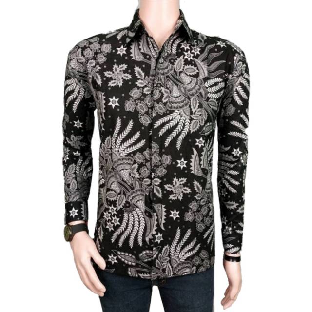 Name: Kemeja Batik Manggar Hitam Abu Panjang Pendek Rbr88d Katun Halus
